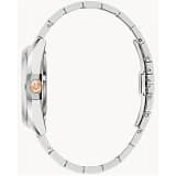 Carcasa din oțel inoxidabil de culoare argintie, cu margini și muchii reliefate, asigură confortul purtării la încheietura mâinii, finisaj lustruit și mat, sticlă safir plată și brățară rapid detașabilă din oțel inoxidabil cu 3 zale și închizătoare cu buton.