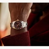 Cadranul de culoare bordeaux intens, cu efect de „raze de soare”, este decorat cu accente de aur roz, indicatoare cu acoperire luminescentă, marcaje minutate în relief și fereastră mărită pentru dată.