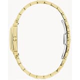 Carcasa rafinată, dreptunghiulară, din oțel inoxidabil auriu, este prevăzută cu sticlă minerală și finisaje care strălucesc în lumină.