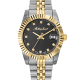 Carcasa și brățara sunt realizate din oțel inoxidabil cu acoperire parțială PVD de culoare auriu galben.