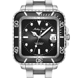 Carcasa și brățara uimitoare din oțel inoxidabil sunt asociate cu un luneta fixă din oțel inoxidabil negru, creând un aspect îndrăzneț, dar rafinat.