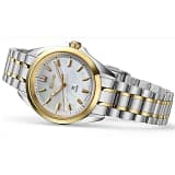 Sub un cristal de safir, cadranul alb din nucă de perle are mâini și indici acoperiți cu Lumibrite pentru o vizibilitate sporită chiar și în condiții de lumină slabă.