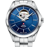 Pe cadranul albastru, marcajele subțiri ale orelor și acele clasice subliniază minimalismul și eleganța. Balanța deschisă („open heart”) de pe cadran permite să aruncați o privire „în inima” mecanismului – un detaliu subtil, care vorbește despre măiestria înaltă a ceasornicarilor și conferă produsului un caracter exclusivist.