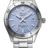 Модель вызывает ощущение солнечных дней с бесконечным голубым небом и легким морским бризом. Голубой циферблат с тисненым узором «солнечные лучи» и винтажным курсивным логотипом Orient из 1950-х годов. Эти особенности подчеркивают характер часов.