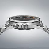 Глубокий черный циферблат с контрастными метками и стрелками обеспечивает превосходную читаемость, а оранжевый акцент на минутной шкале добавляет динамики и спортивного настроения.
